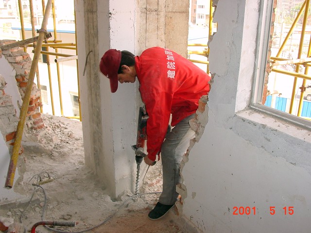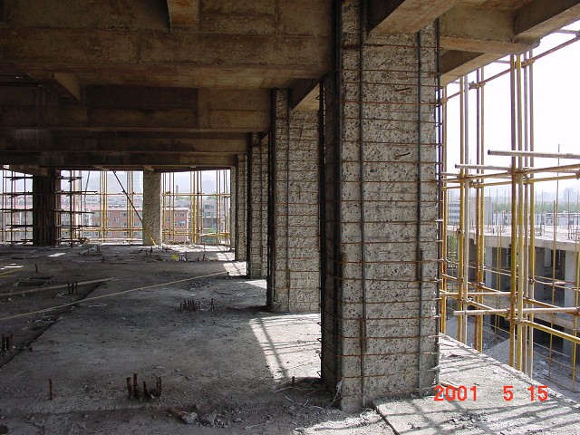 濟南嘉恒商務大廈建于1995年,中間因故停工,1999年繼續建設,我單位對其主體結構進行了鑒定加固,采用化學植筋,加大截面加固框架柱進行處理。
