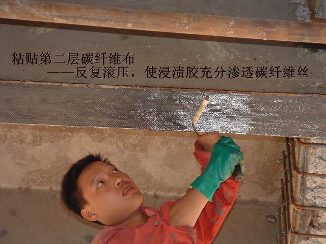泰萊公路北墠河大橋共17跨,T型梁出現大量收縮裂縫,采用封閉處理,次梁采用加大截面法加固,主梁底部采用粘貼兩層碳纖維加固,側面采用粘鋼板加固提高抗剪能力。