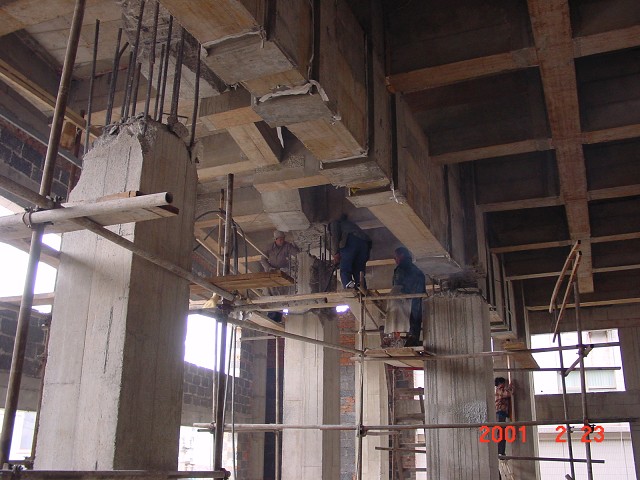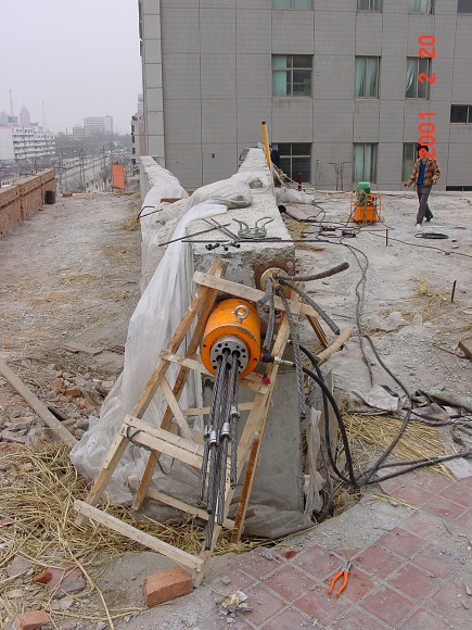 濟南勝利石油大廈,原辦公室改為大會議室,抽三根框架柱,采用上翻預應力梁結合腹板柱空腹桁架轉換結構進行加固改造處理,既滿足了安全要求,又滿足了使用功能的改變。