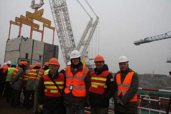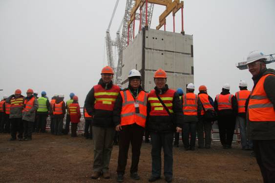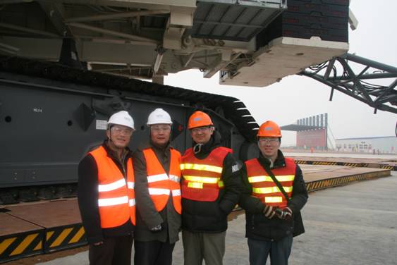 圖7 加固所人員與中核五公司海陽總承包部的管理人員在大吊車現場