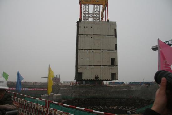圖5 大型吊裝構件正在吊裝核島工作室(1000多噸)