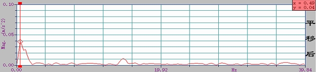 平移后的測(cè)試結(jié)果:根據(jù)實(shí)測(cè)的實(shí)時(shí)譜曲線,平移后二層樓面振動(dòng)測(cè)點(diǎn)的主頻為0.49HZ(振動(dòng)周期2.04s)。